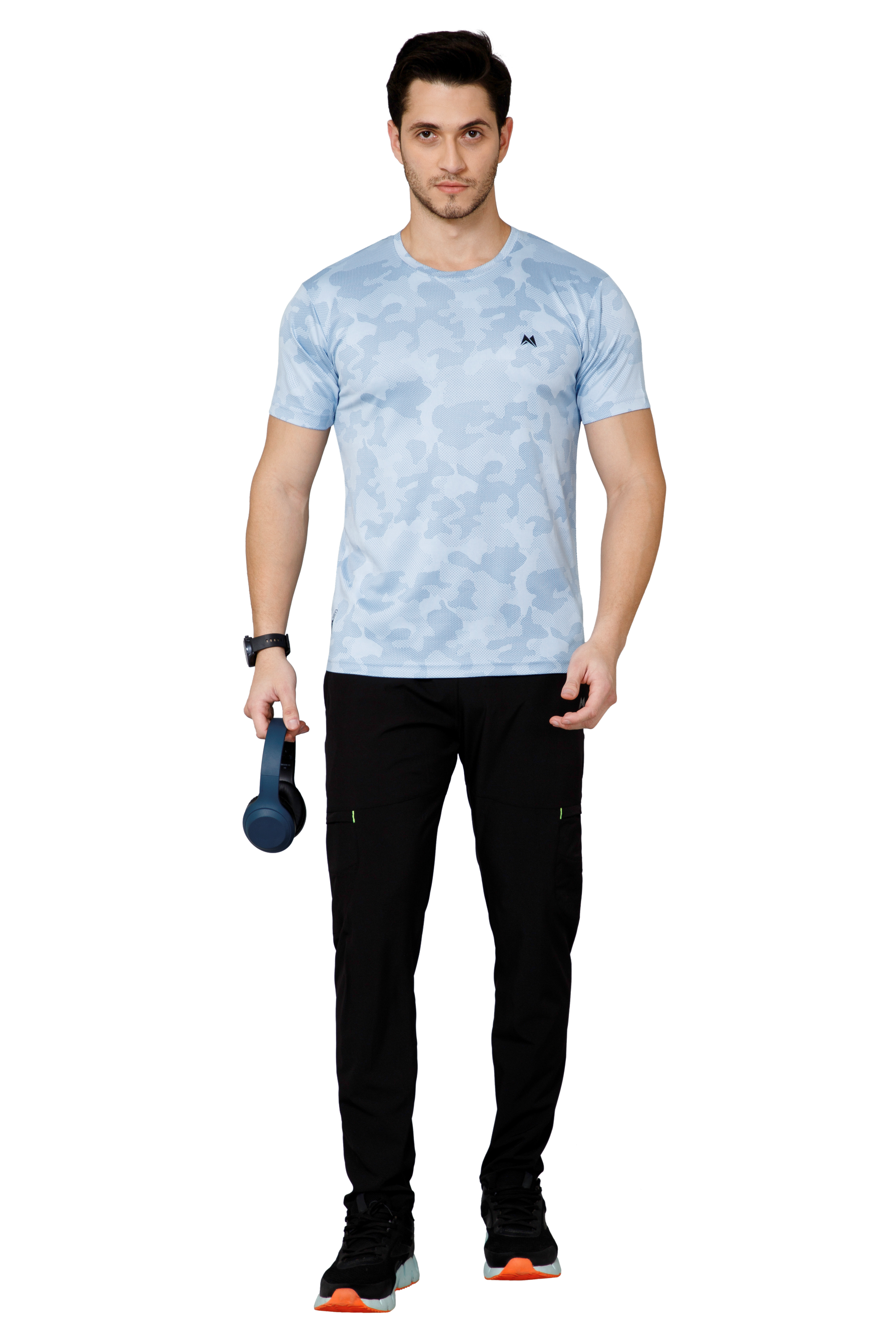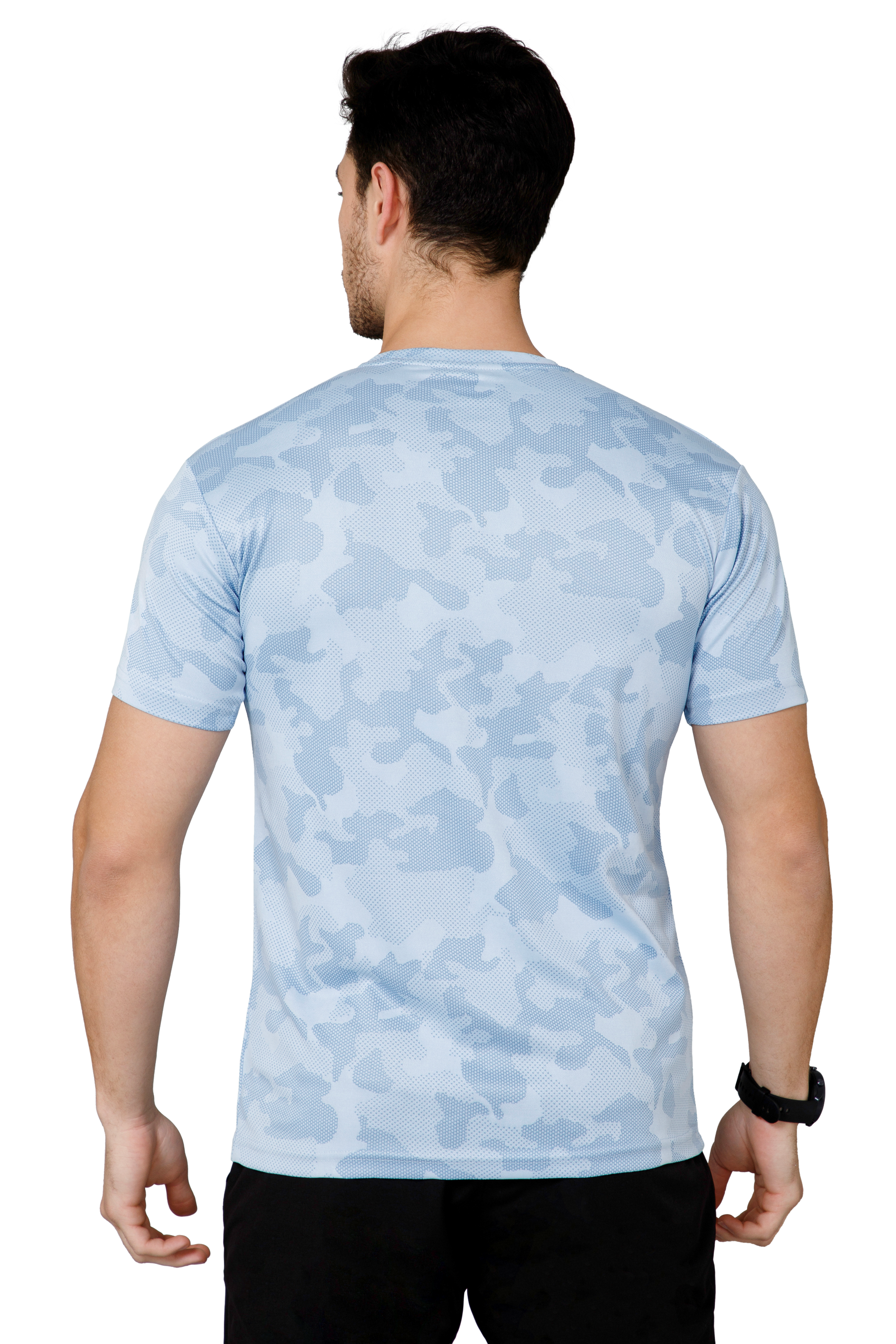 Mexofit Sky Blue Mens Regular Fit Camo Performance Round Neck T-Shirt